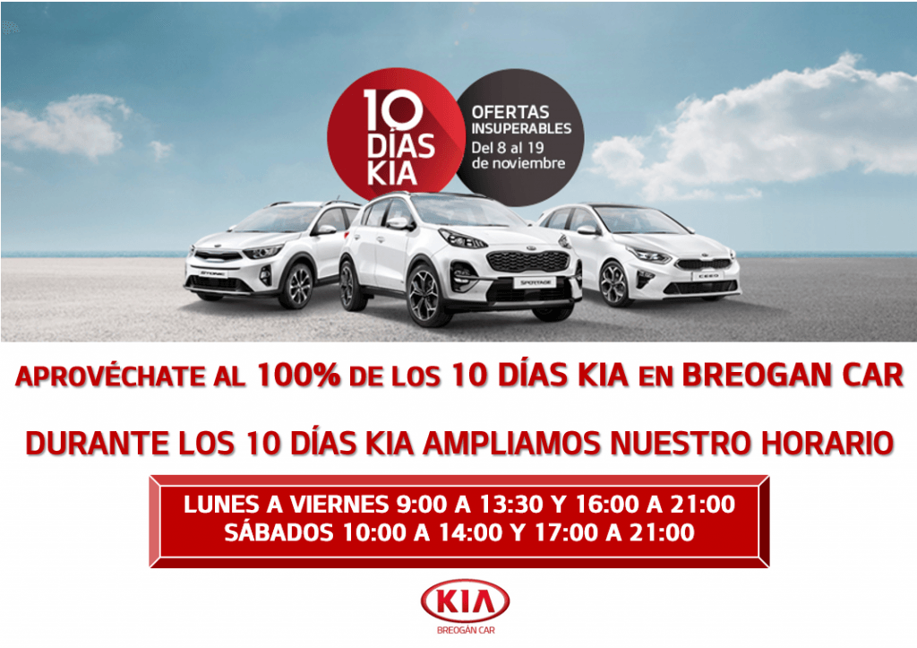 De nuevo regresan los 10 días Kia a Breogan Car, concesionario oficial Kia en Lugo y A Mariña con descuentos insuperables.
