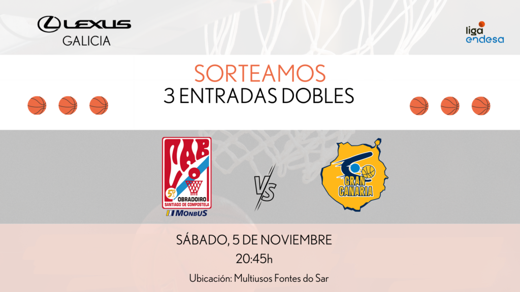 Breogán Ocasión sortea tres entradas dobles para disfrutar este sábado 5 de noviembre de un nuevo partido del Obradoiro CAB en casa, en el Multiusos