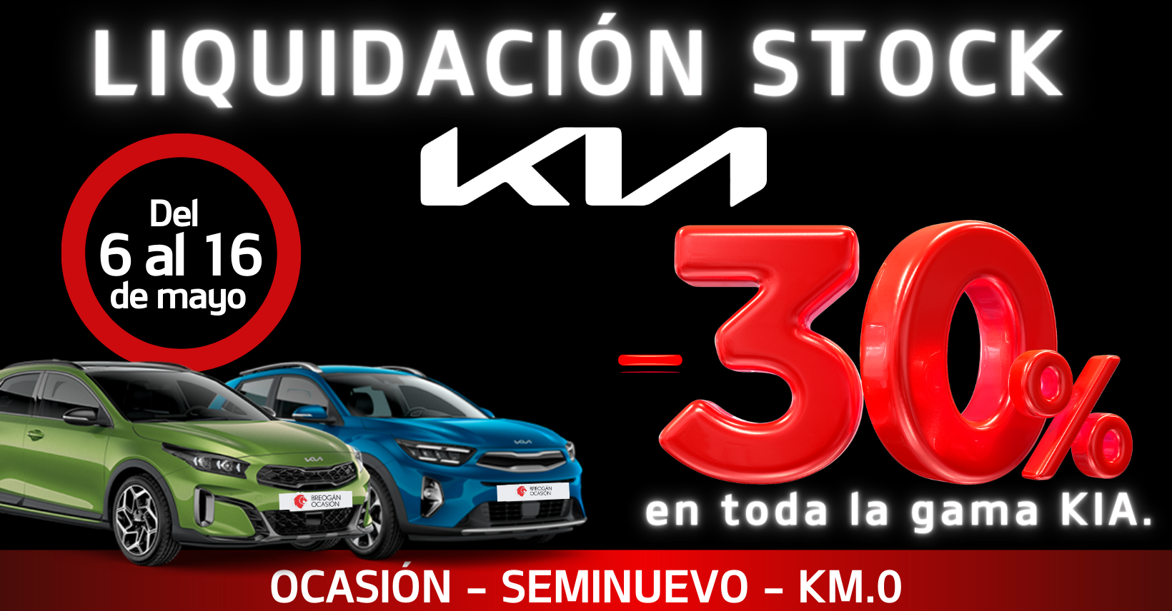 ¡Aprovecha nuestra liquidación de stock con un descuento del 30% en toda la gama Kia, sólo del 6 al 16 de Mayo en Breogán Car Lugo!