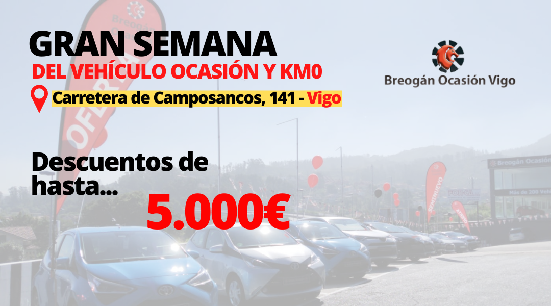 Ven a vernos a Breogán Ocasión Vigo en CARRETERA DE CAMPOSANCOS, 141 y te ayudaremos a buscar el coche que más se adapta a ti, solo del 9 al 17 de julio en horario ininterrumpido de 9.00 h a 20.00 h. También puedes consultarnos por llamada o Whatsapp en el número 669 84 73 87.
