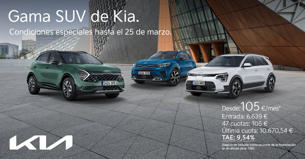 Las condiciones especiales en la Gama SUV de Kia llegan a Breogan Car, concesionario oficial Kia en Lugo y San Cosme de Barreiros y a Breogán Drive, concesionario oficial Kia en Santiago de Compostela.