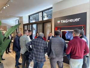 Como broche final y última parada de esta jornada; Miguel Folque, director y retail en España, Portugal, Andorra y Gibraltar de la marca TAG Heuer, acompañado por Andrés Calvo, director general de Calvo Joyeros, presentaban la marca de relojes suizos TAG Heuer y algunos de los modelos de edición especial en su colaboración con Porsche como el TAG Heuer Carrera x Porsche Orange Racing 44, Carrera Porsche Chronograph Special Edition, Monaco x Gulf, Monaco Calibre Heuer 02 y Aquaracer Professional.