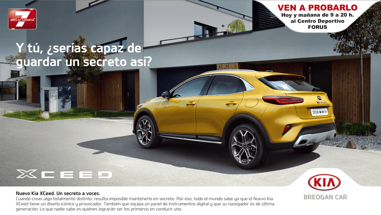 El nuevo Kia XCeed está diseñado para llamar al atención desde cualquier ángulo. Pero hay más en este nuevo modelo que su diseño… y en Breogan Car queremos que seas el primero es descubrirlo. Por eso te invitamos los dias 25/26 de septiembre a que conozcas este nuevo modelo de Kia en las instalaciones de Centro deportivo Forus de Lugo en la calle Iglesias Otero numero 52. El horario es ininterrumpido desde las 9 de la mañana hasta las 20 horas. No pierdas la oportunidad de descubrir un universo de posibilidades con el Nuevo XCeed.