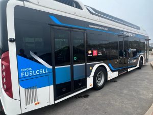 Esta mañana se ha llevado a cabo una prueba piloto del primer autobus fabricado por Caetano, con pilas de hidrógeno Toyota. El vehículo ha realizado el recorrido de la línea 1, que une el puerto de la ciudad de A Coruña (La Marina) con la Torre de Hércules. Este evento está vinculado con el nuevo proyecto de la ciudad: “A Coruña Green Port“.
