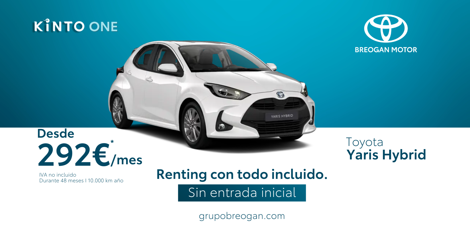 Ven a Breogán Motor, tu concesionario oficial Toyota en A Coruña, Carballo, Narón, Lugo y Barreiros, y elige tu oferta de renting sin entrada inicial. Con todas las ventajas de un coche nuevo Toyota, con cuotas mensuales fijas y con la tranquilidad de tener todos los servicios incluidos: