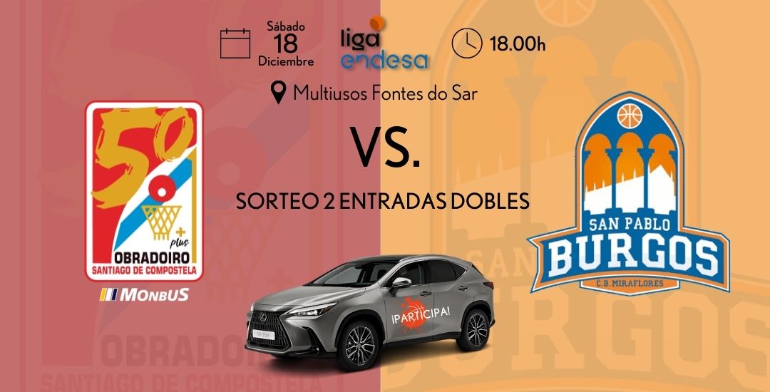 Lexus Breogán realiza un nuevo sorteo de dos entradas dobles para asistir al Multiusos Fontes do Sar de Santiago de Compostela para apoyar al Monbús Obradoiro.. El partido enfrentará al Monbús Obradoiro y al UCAM Murcia este sábado 18 de Diciembre a las 18h.