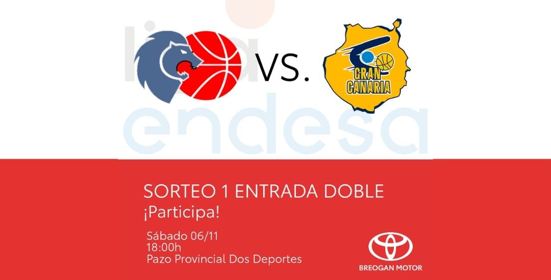 Toyota Breogán Motor sortea entre todos sus seguidores una entrada doble para el partido de la Liha Endesa ACB, Río Breogán vs. Herbalife Gran Canaria, que se celebrará este sábado 6 de noviembre a las 18h en el Pazo Provincial Dos Deportes de Lugo.