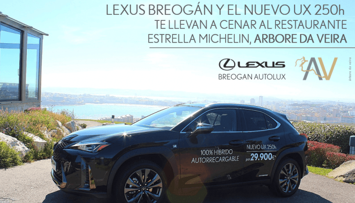 Lexus breogan tiene preparado un sorteo de una noche híbrida/gastronómica inolvidable, en el espectacular restaurante con una estrella Michelin “Arbore da Veira” junto con el Nuevo Lexus UX 250h Híbrido Autorrecargable.