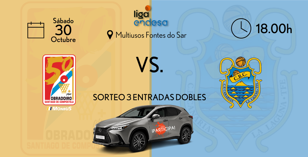 El Monbus Obradoiro vuelve a jugar en casa este sábado 30 de octubre y como viene siendo habitual, Lexus Breogán realiza un nuevo sorteo de entradas para asistir al Multiusos Fontes do Sar de Santiago de Compostela. De nuevo sortearemos 3 entradas dobles para que nuestros seguidores disfruten del partido con quien quieran. El partido enfrentará al Monbús Obradoiro y al Lenovo Tenerife a las 18h.