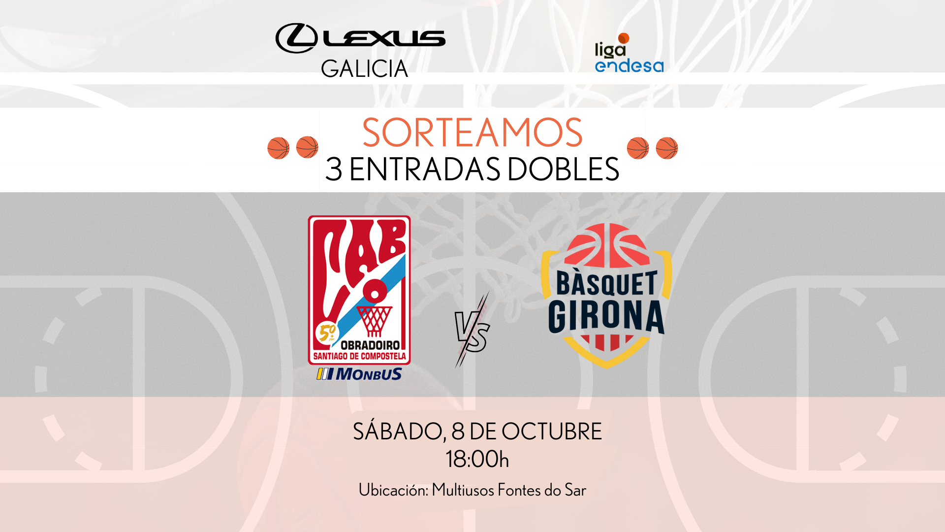 Este sábado vuelve un nuevo partido en A Caldeira y Lexus Breogán quiere que lo disfrutes, por eso realizamos un nuevo sorteo de tres entradas dobles para asistir al Multiusos Fontes do Sar de Santiago de Compostela y apoyar al Monbús Obradoiro CAB. El partido enfrentará al Monbús Obradoiro y al Bàsquet Girona este próximo sábado 8 de octubre a las 18:00 h.