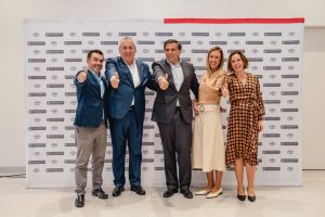 En el acto de ceremonia Miguel Carsi acompañado por dos directivos de Toyota España: Isabel Járrega directora de experiencia del cliente y transformación empresarial y Antonio Vázquez, director de operaciones y desarrollo de canales fueron los encargados de entregar los pines “Retailer Excellence” a los más de 80 trabajadores de Breogan Motor.
