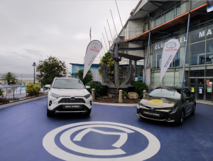En las afueras de las instalaciones del Club del Mar estaban presentes el Toyota RAV4 Hybrid y el Toyota Corolla Hybrid de Toyota Breogán .
